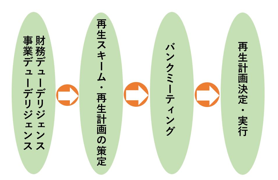 経営状況の実態(財務・事業デューデリジェンス)把握を通じて資産査定や事業分析等を行い、経営課題を明確にさせた上で、企業再生計画を策定します。もちろん、実行支援や実行後のフォローまで、トータルサポートしますので、ご安心くださいませ。